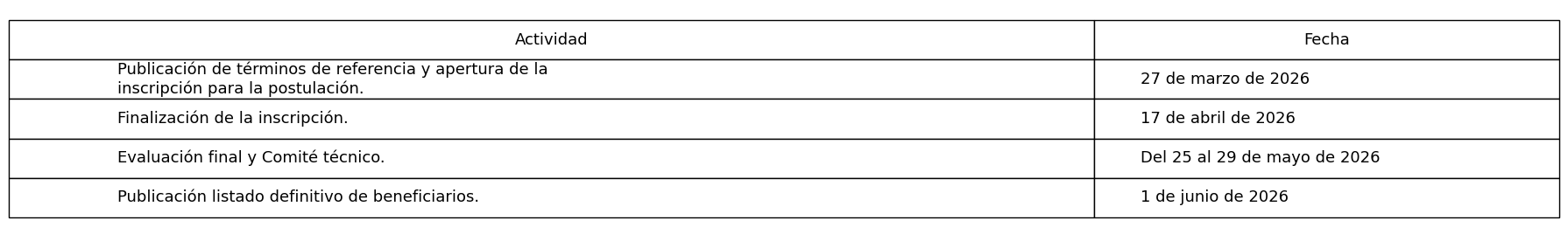 Así mismo, la publicación del listado definitivo de beneficiados se realizará el 1 de junio, una vez se surtan las etapas de subsanaciones, visitas de campo y evaluación final.